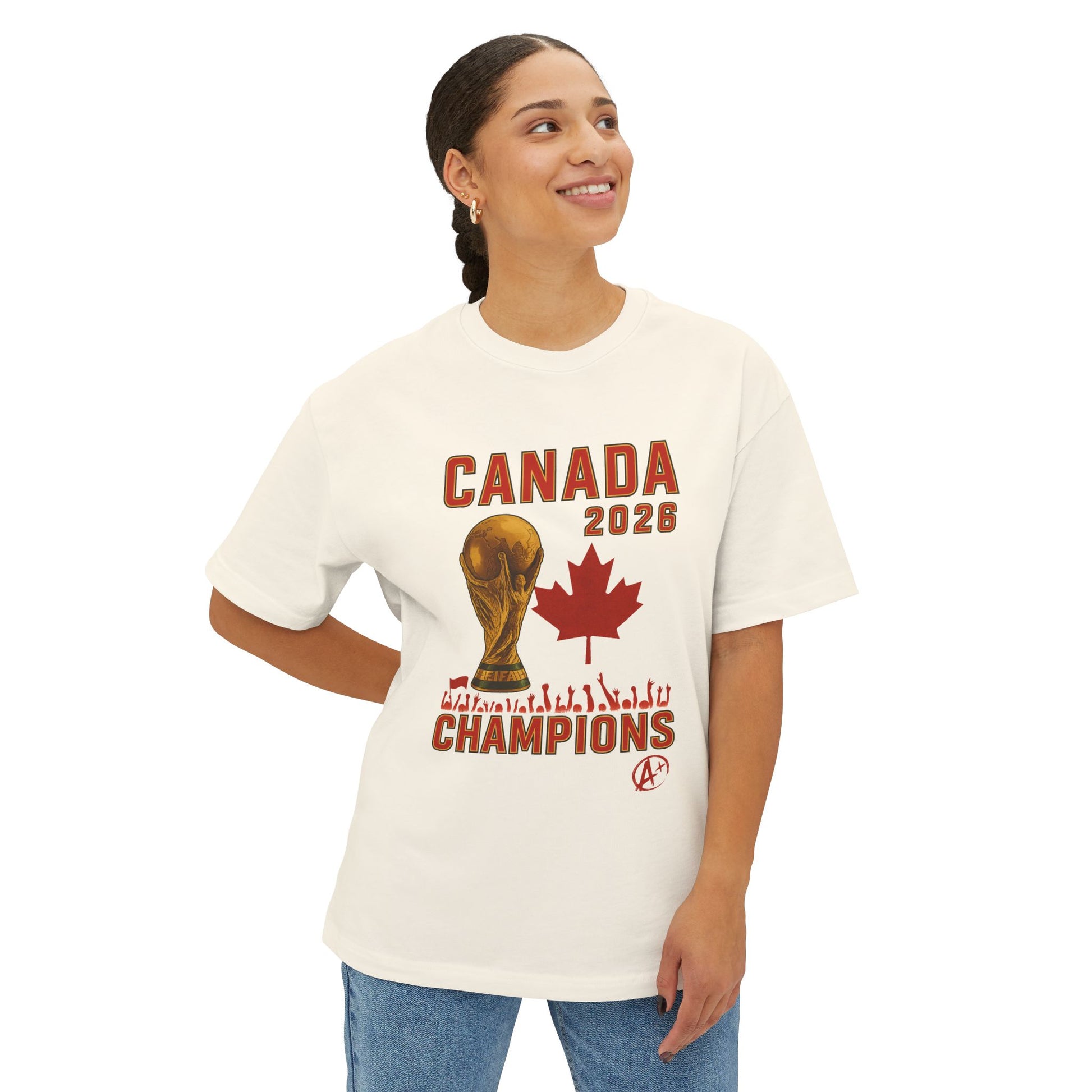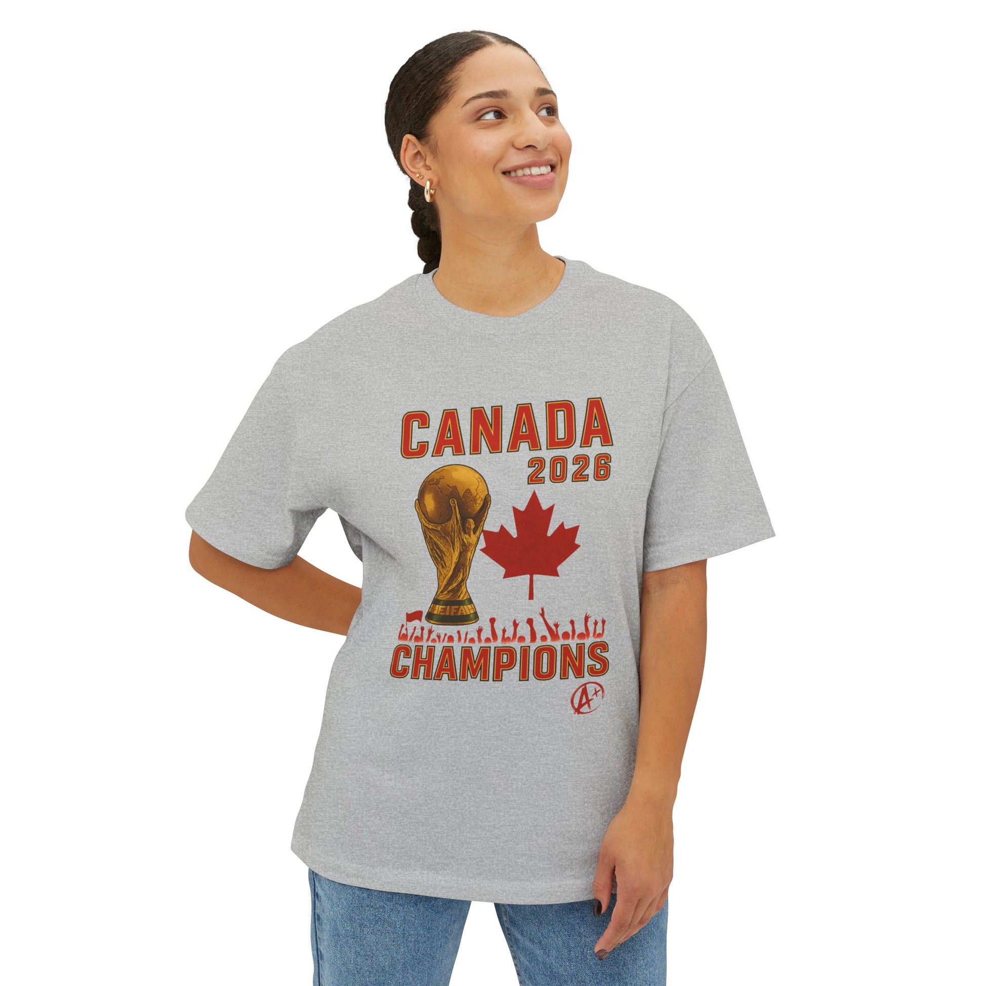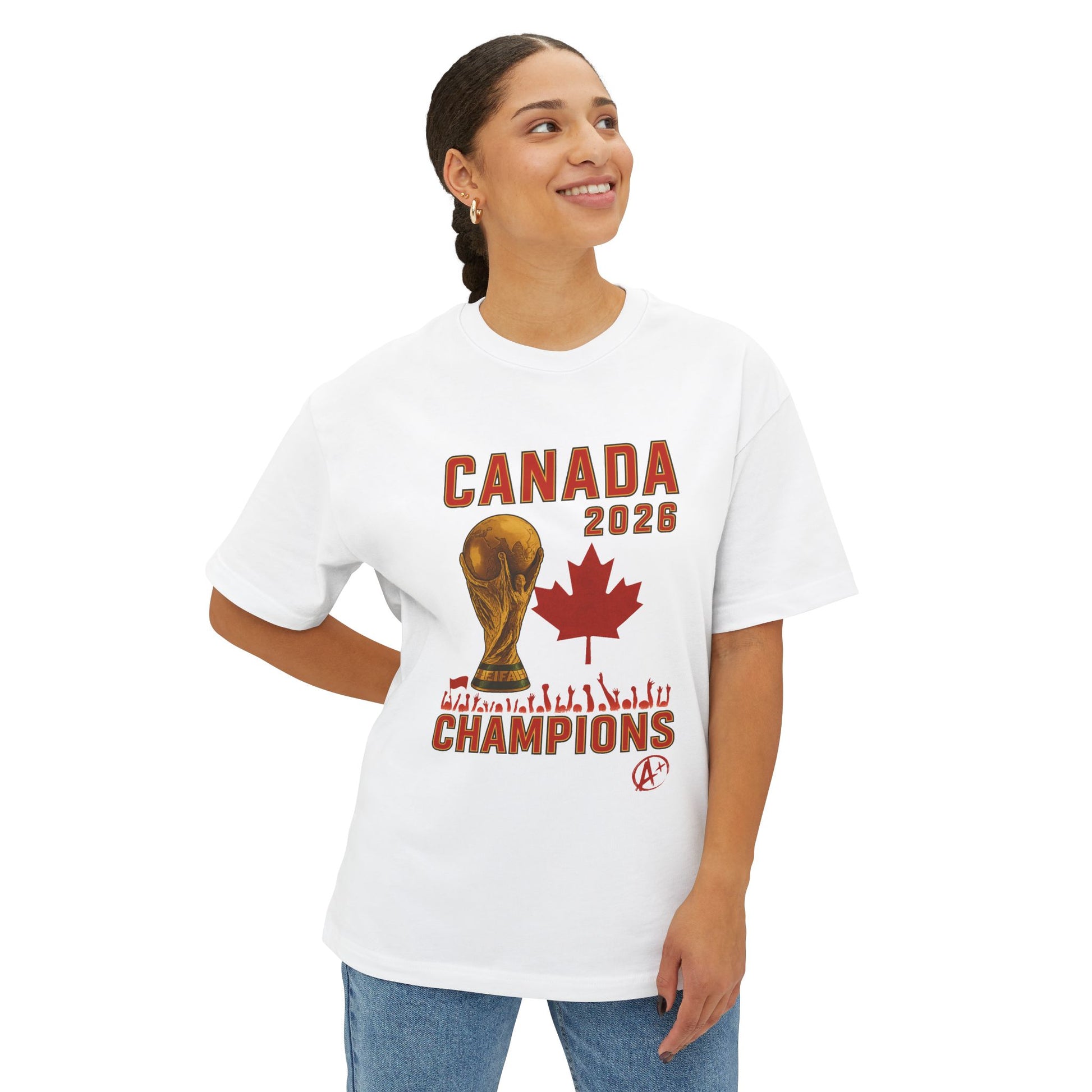 Celebrate Canada’s golden moment with the Canada 2026 Champions Tee—a bold design featuring the iconic World Cup trophy, a glowing stadium, the proud maple leaf, and cheering fans in celebration. This shirt embodies the unity, pride, and passion of Canadian soccer on the world stage, making it a must-have for fans who want to wear history.