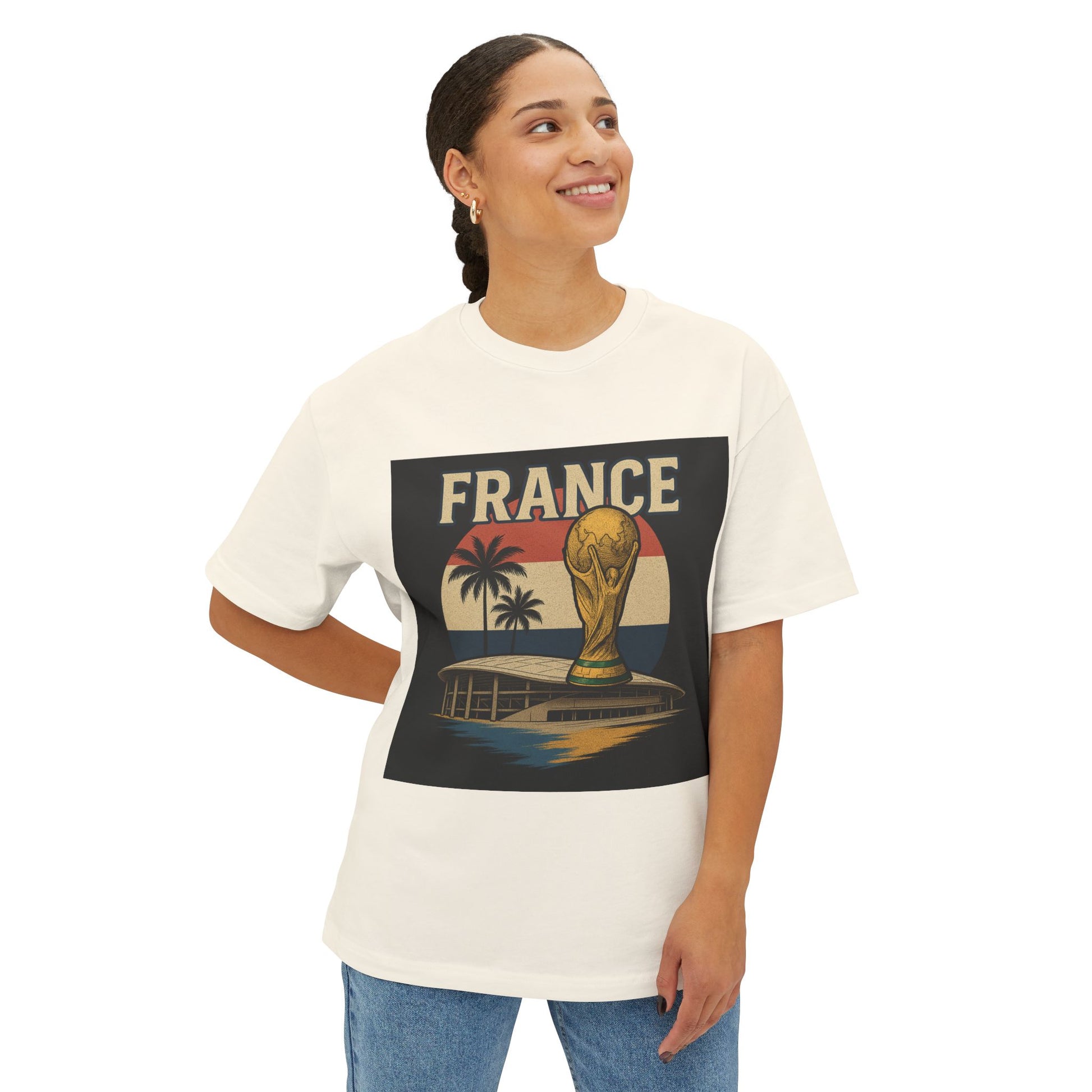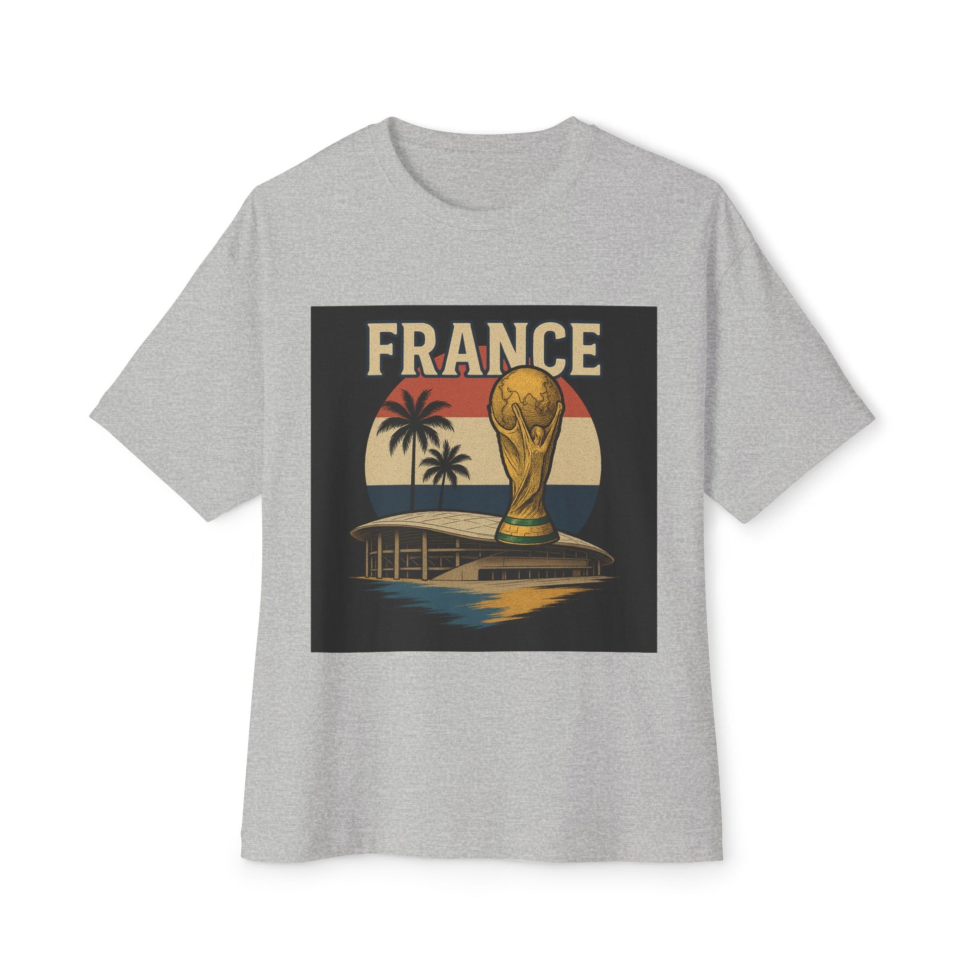 Bring French pride to the spotlight with the France 2026 Champions Tee – French Sunset Edition. This vibrant design captures the golden World Cup trophy rising over a stadium backdrop, framed by palm trees and a tricolor sunset in blue, white, and red. It’s the perfect blend of victory, culture, and style—an essential for fans who believe in Les Bleus and their championship spirit.