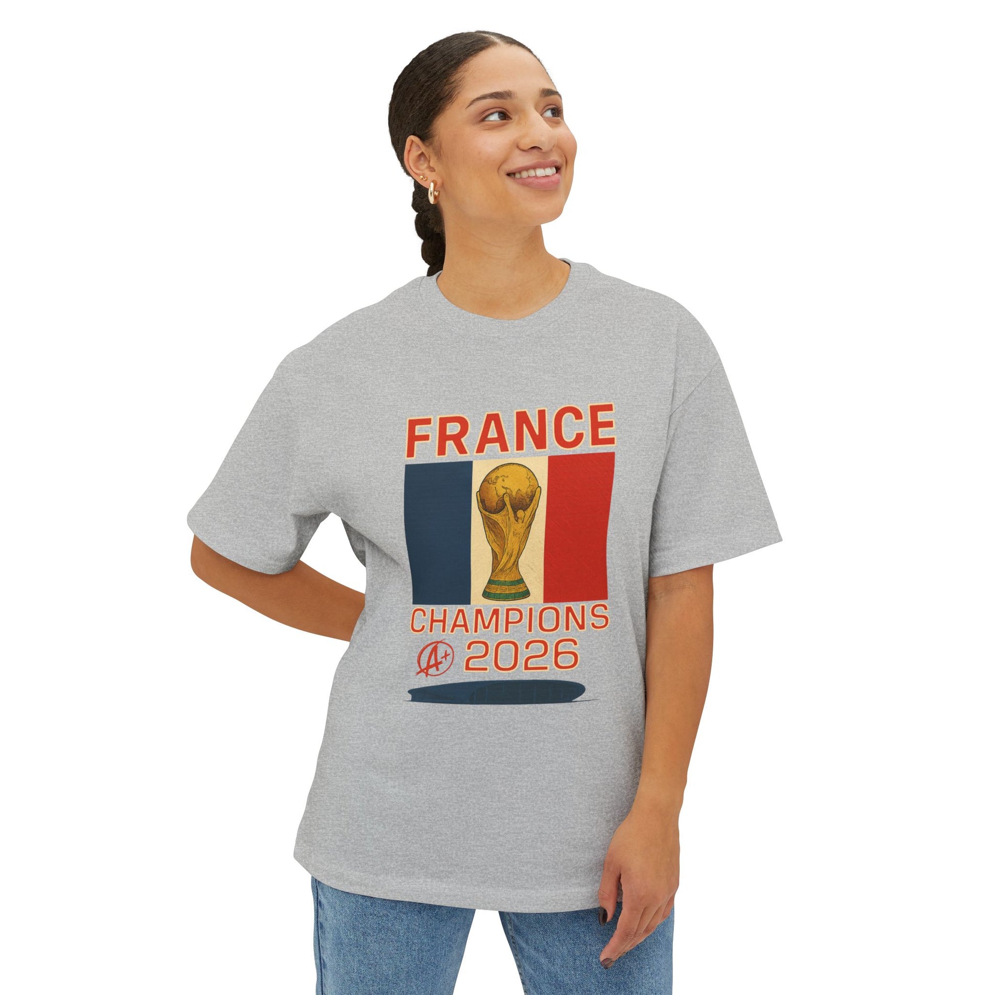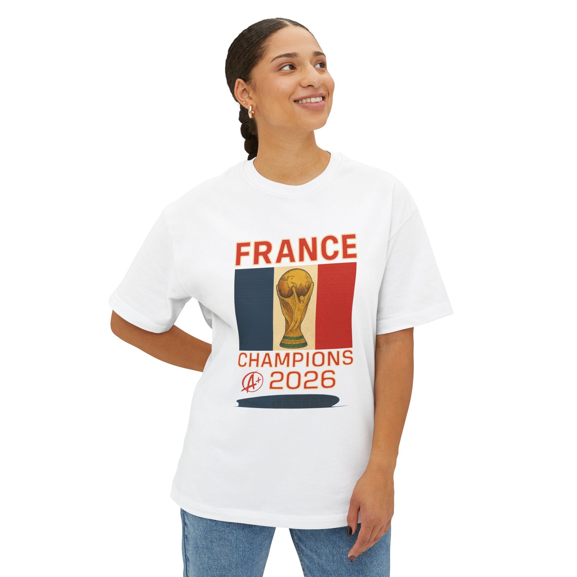 Celebrate French football greatness with the France 2026 Champions Tee – Tricolor Glory Edition. Featuring the World Cup trophy boldly set against the French tricolor, this design radiates victory and national pride. The powerful “FRANCE Champions 2026” lettering ensures your support for Les Bleus is seen loud and clear, while the stadium detail grounds the design in the excitement of the tournament.