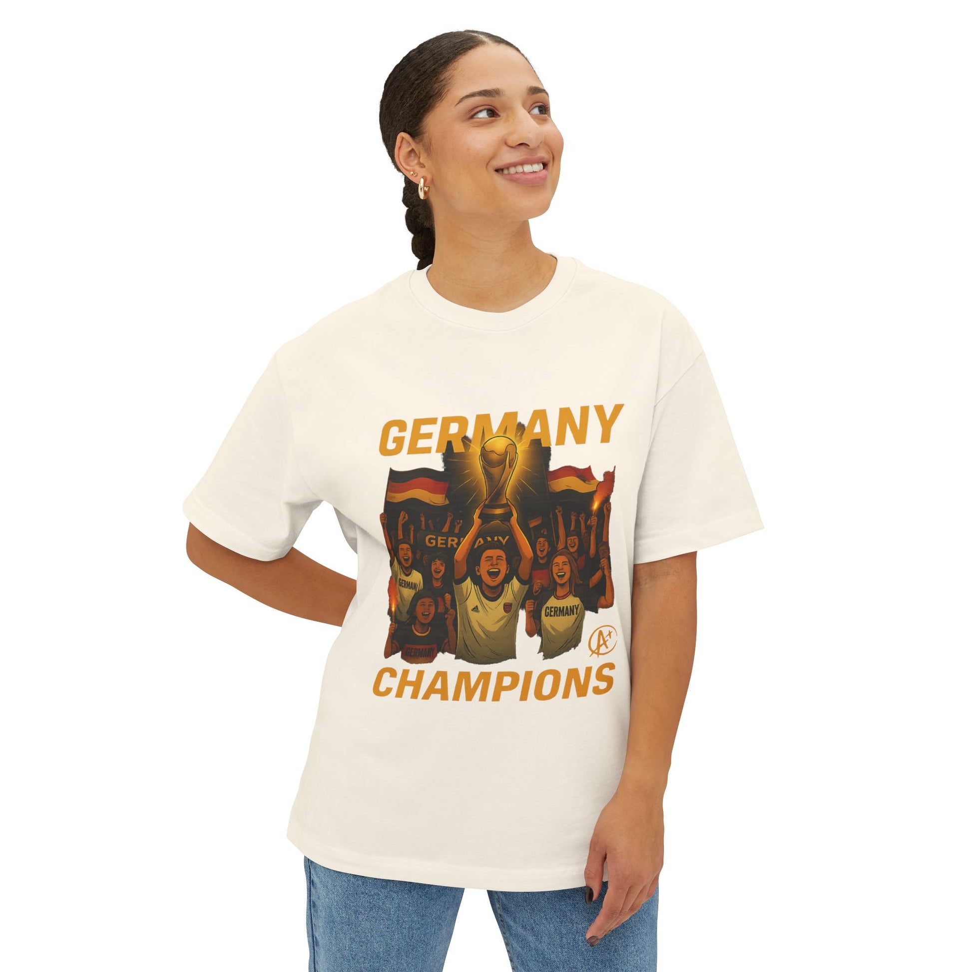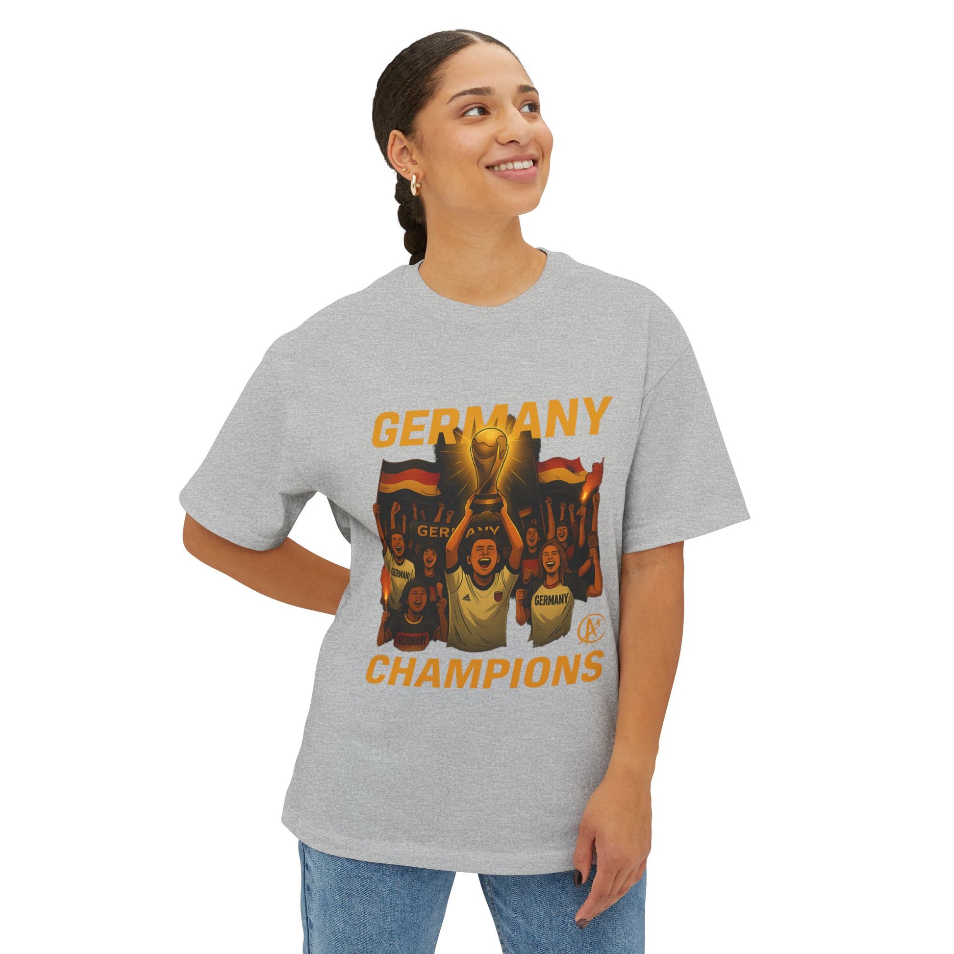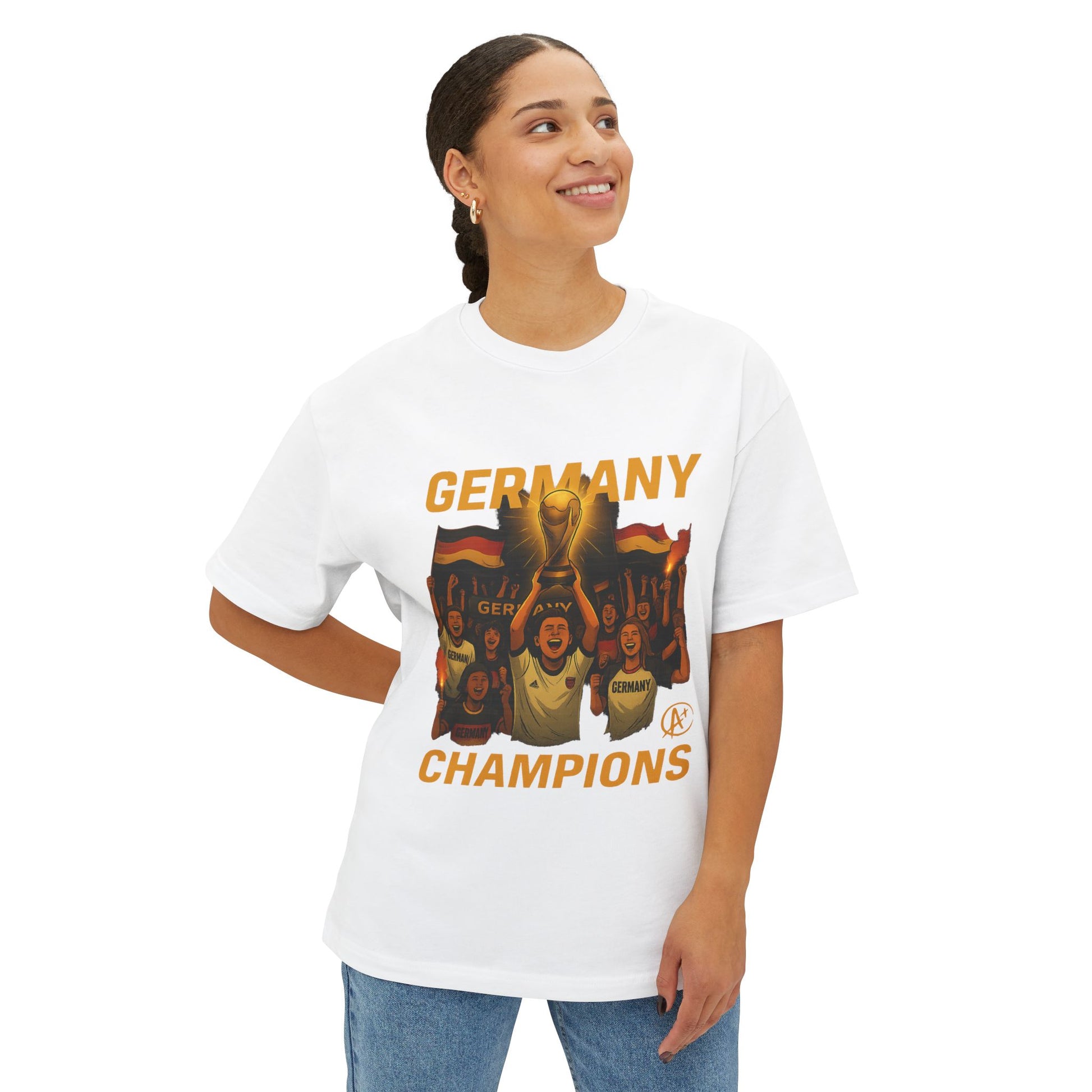 Celebrate the spirit of unity, pride, and triumph with the Germany 2026 Victory Squad Tee. This powerful design showcases jubilant fans lifting the World Cup trophy high, surrounded by waving German flags and flares of victory. It’s a tribute not just to the players on the field, but to the passionate supporters who bring the game to life. With its glowing gold tones and bold artwork, this tee captures the electric energy of championship glory in Los Angeles 2026.
