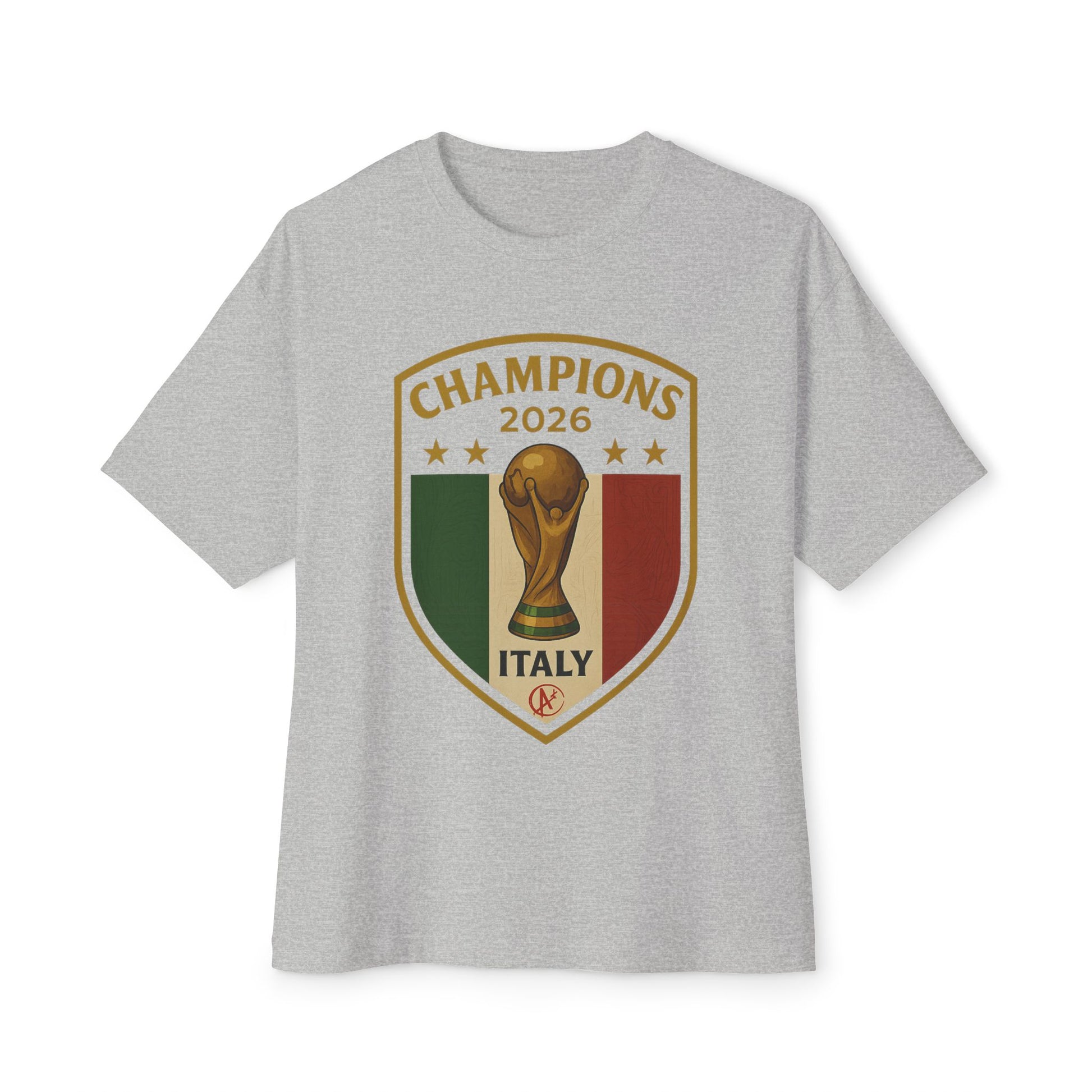 Wear victory with pride in the Italy 2026 Azzurri Crest Tee. This bold design places the iconic World Cup trophy at the heart of a shield, framed by the Italian tricolor flag. Above, “Champions 2026” shines alongside four stars, symbolizing Italy’s rich football legacy and a new golden triumph. The glowing effect around the crest adds a radiant finish, making this shirt a must-have for Azzurri fans who want to showcase both heritage and victory.