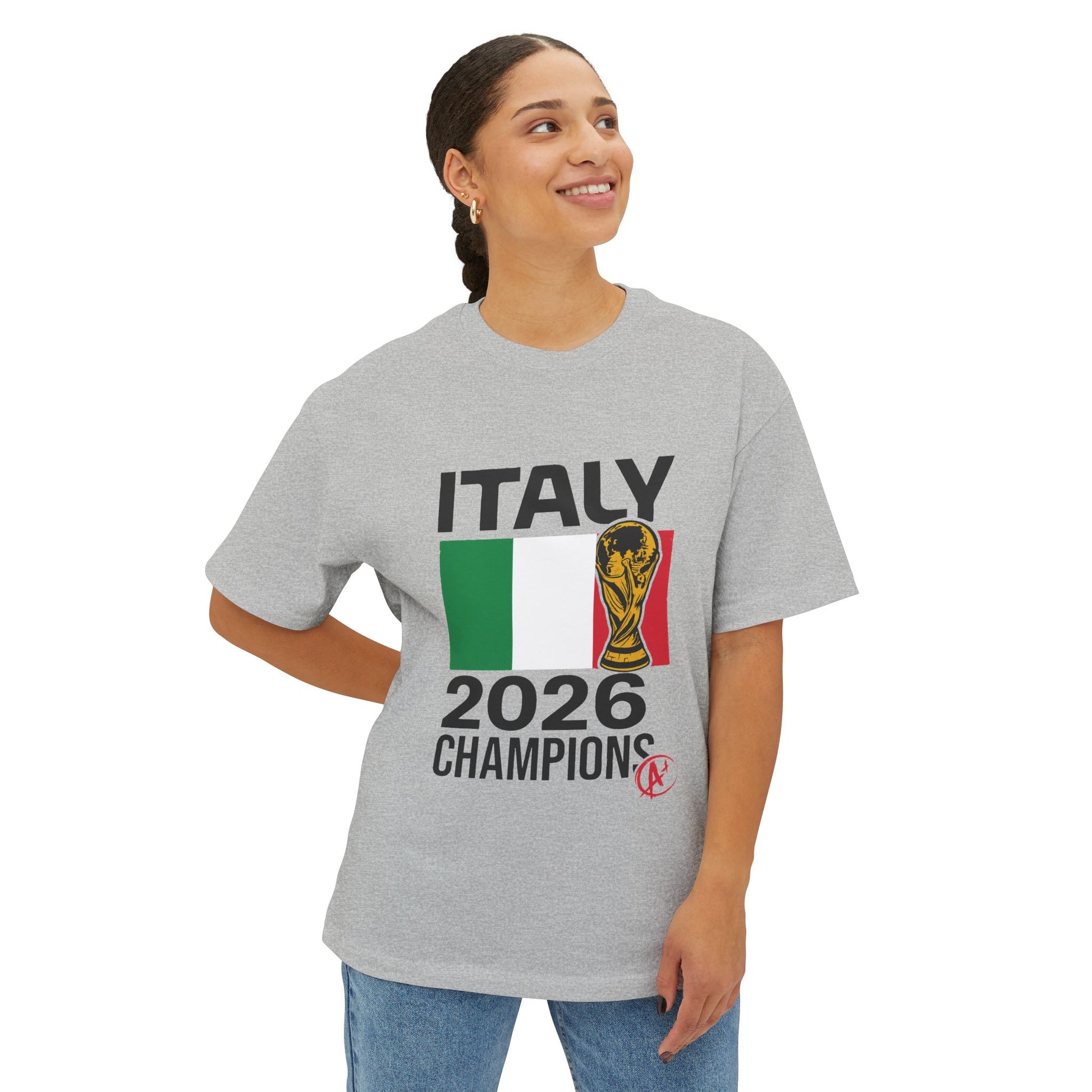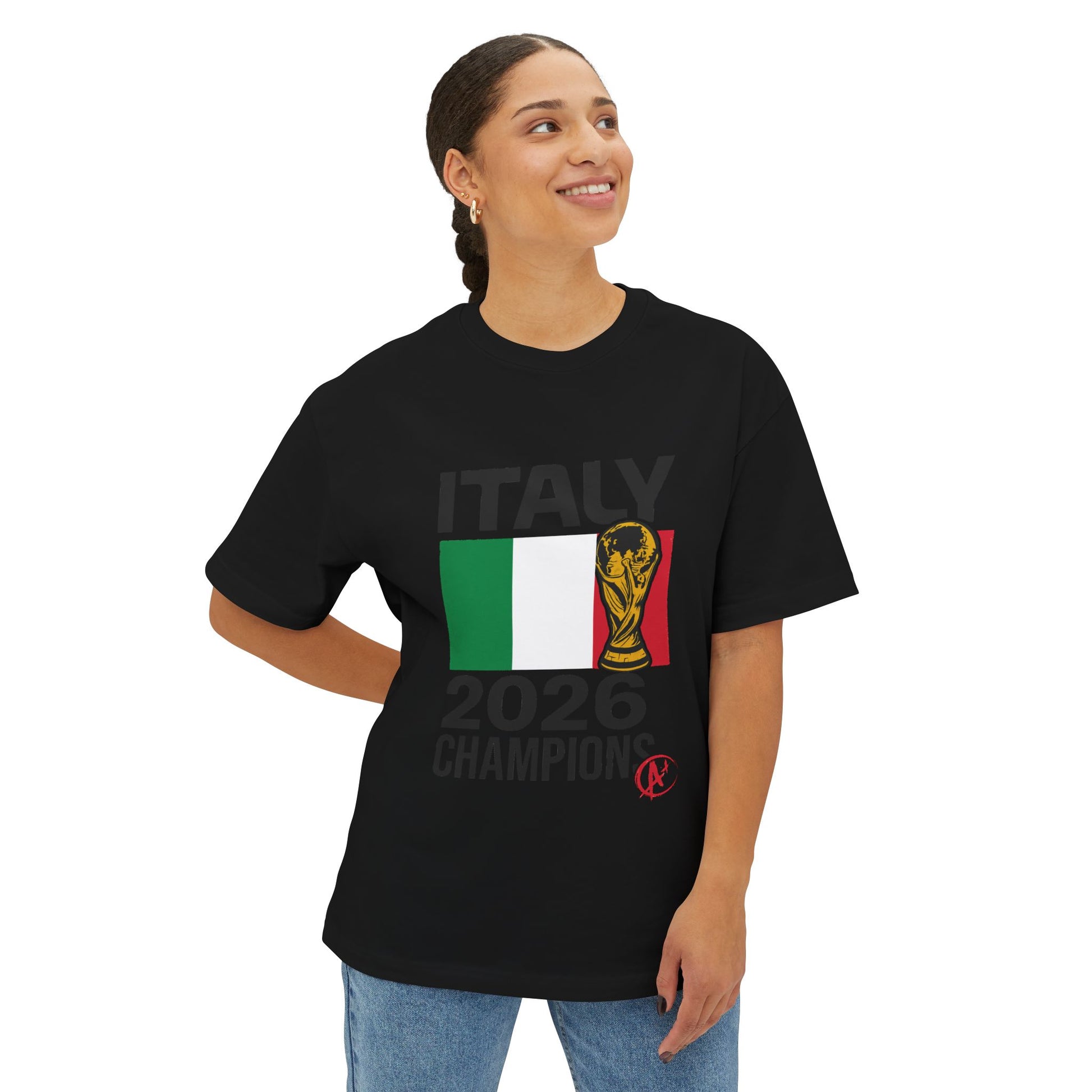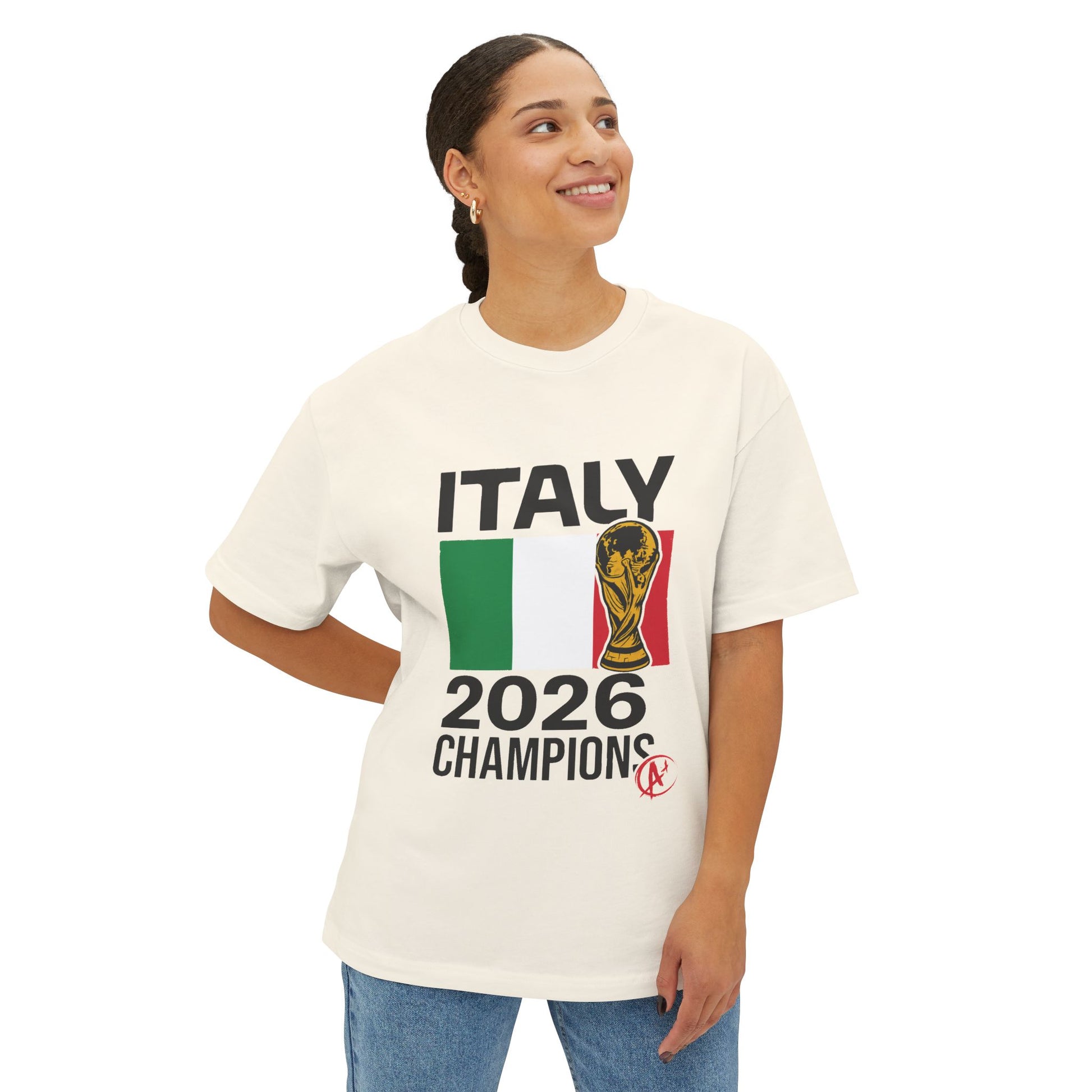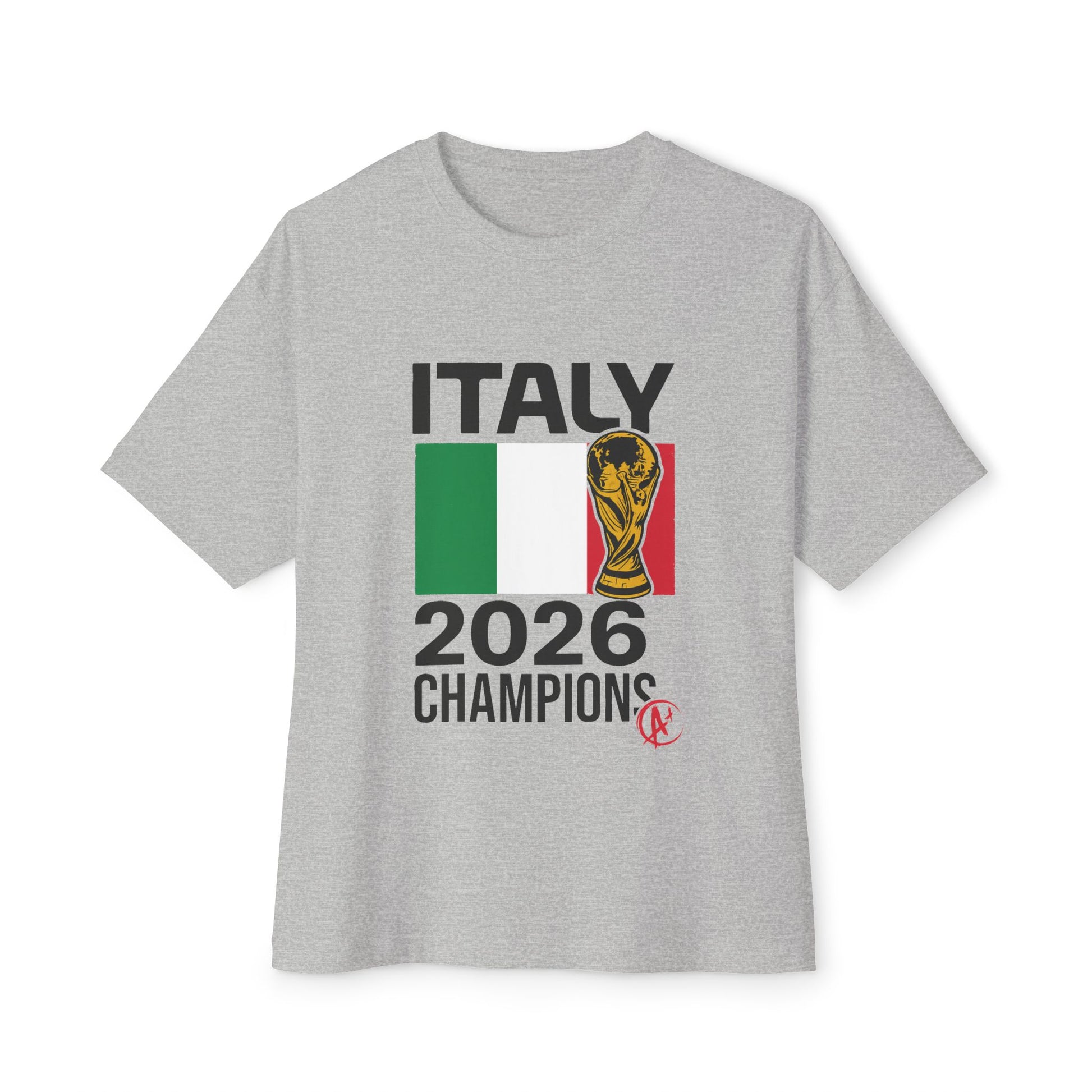 Celebrate Italy’s road to victory with the Italy 2026 Flag of Glory Tee. Featuring the bold Italian tricolor as the backdrop and the golden World Cup trophy front and center, this design captures the pride, passion, and triumph of Azzurri football. The clean, powerful typography spells out “Italy 2026 Champions,” making it a statement piece for fans who want to wear their nation’s glory loud and proud.