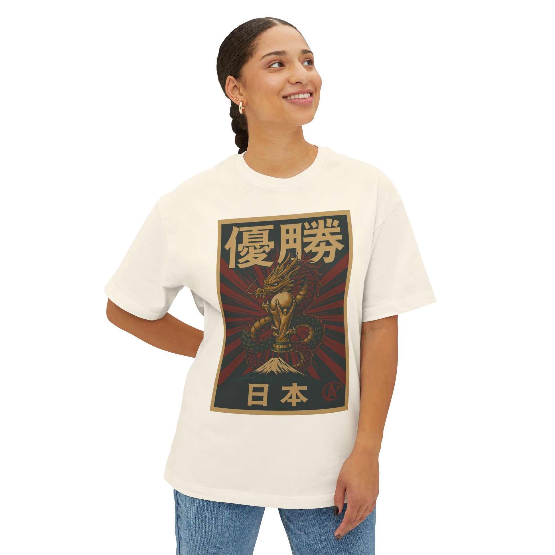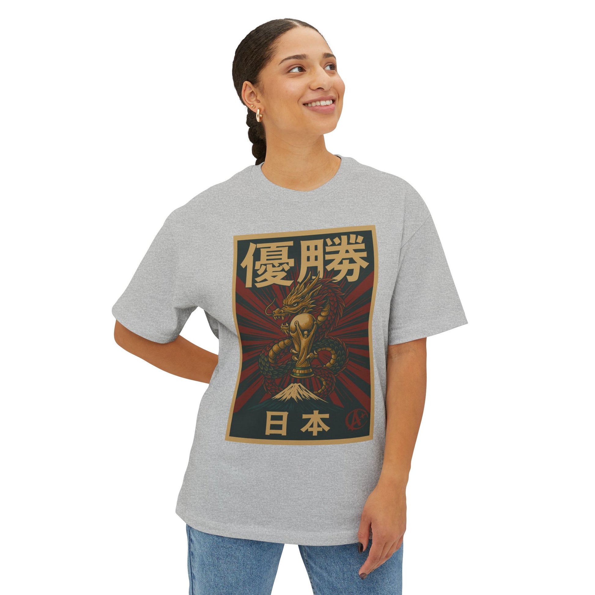 Celebrate Japan’s legendary triumph with the Victory Dragon Tee. This bold design merges myth and victory, featuring a fierce golden dragon coiled around the championship trophy, Mt. Fuji beneath, and radiant red sunburst lines symbolizing strength, power, and national pride. It’s a statement piece for fans who want their passion to roar.